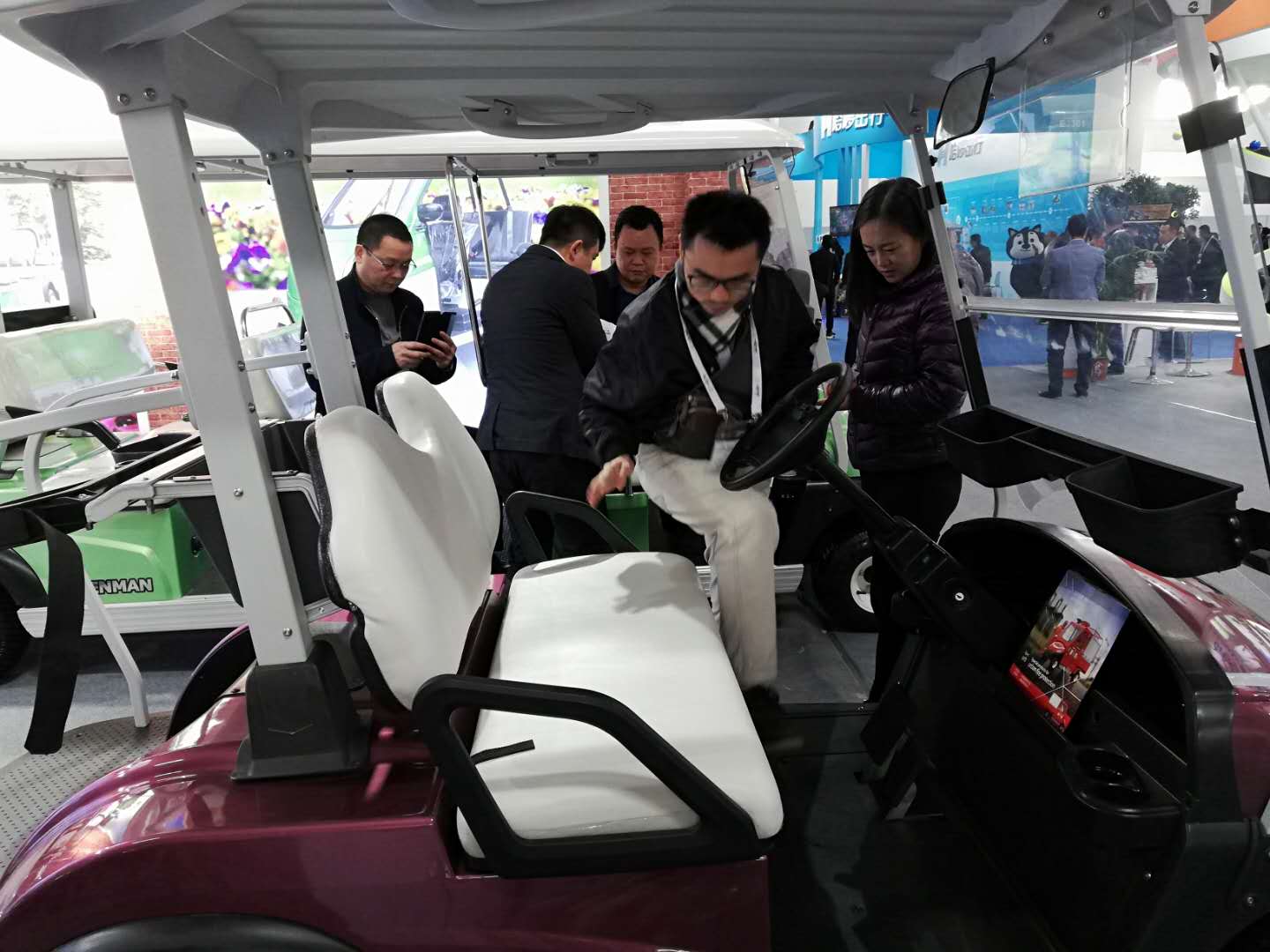 展会上,我公司电动车辆吸引了众多参观者的目光,来自景区,游乐场等各行各业有合作意向的专业客户和我公司工作人员进行详细地咨询与洽谈。
