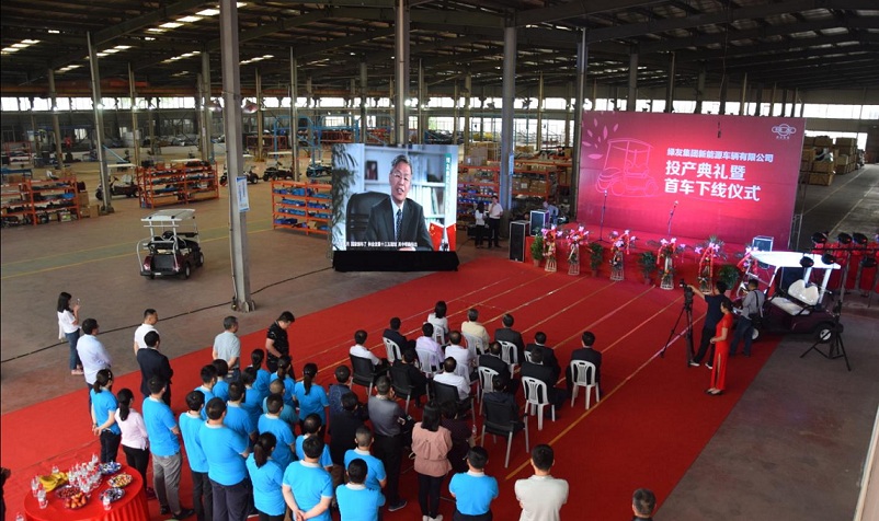 5月5日上午,在一串喜庆的鞭炮声中,绿友集团新能源车辆有限公司投产典礼暨首车下线仪式正式开始。