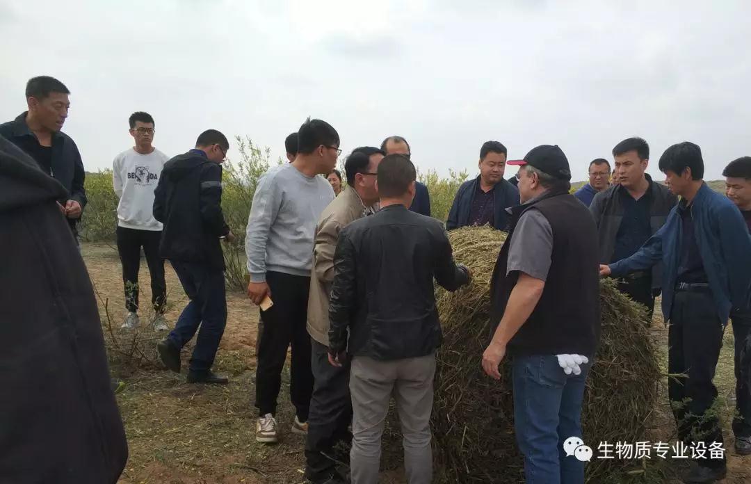 在为期4日的演示过程中,设备表现完美,超乎想象。在拖拉机的牵引下,一行行的柠条被设备吃进肚子,消化一会便后拉出个大大的“金粑粑”。